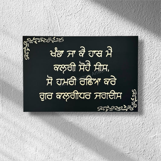 "Khanda Jake haath mein, Kalgi sohe sheesh" Gurbani Plaque