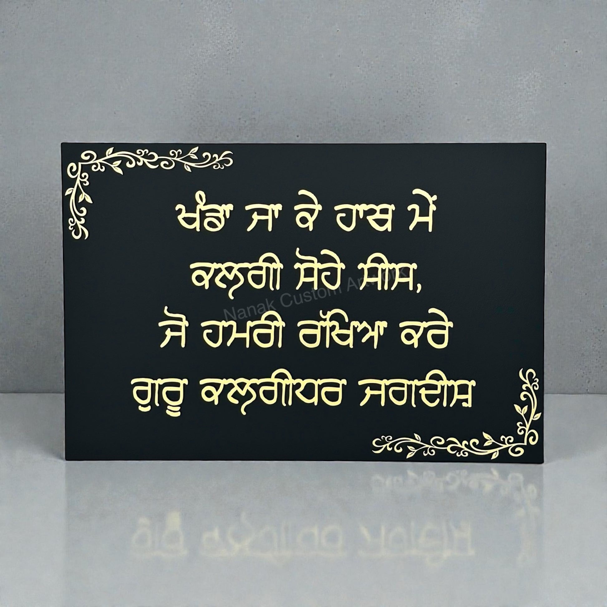 "Khanda Jake haath mein, Kalgi sohe sheesh" Gurbani Plaque