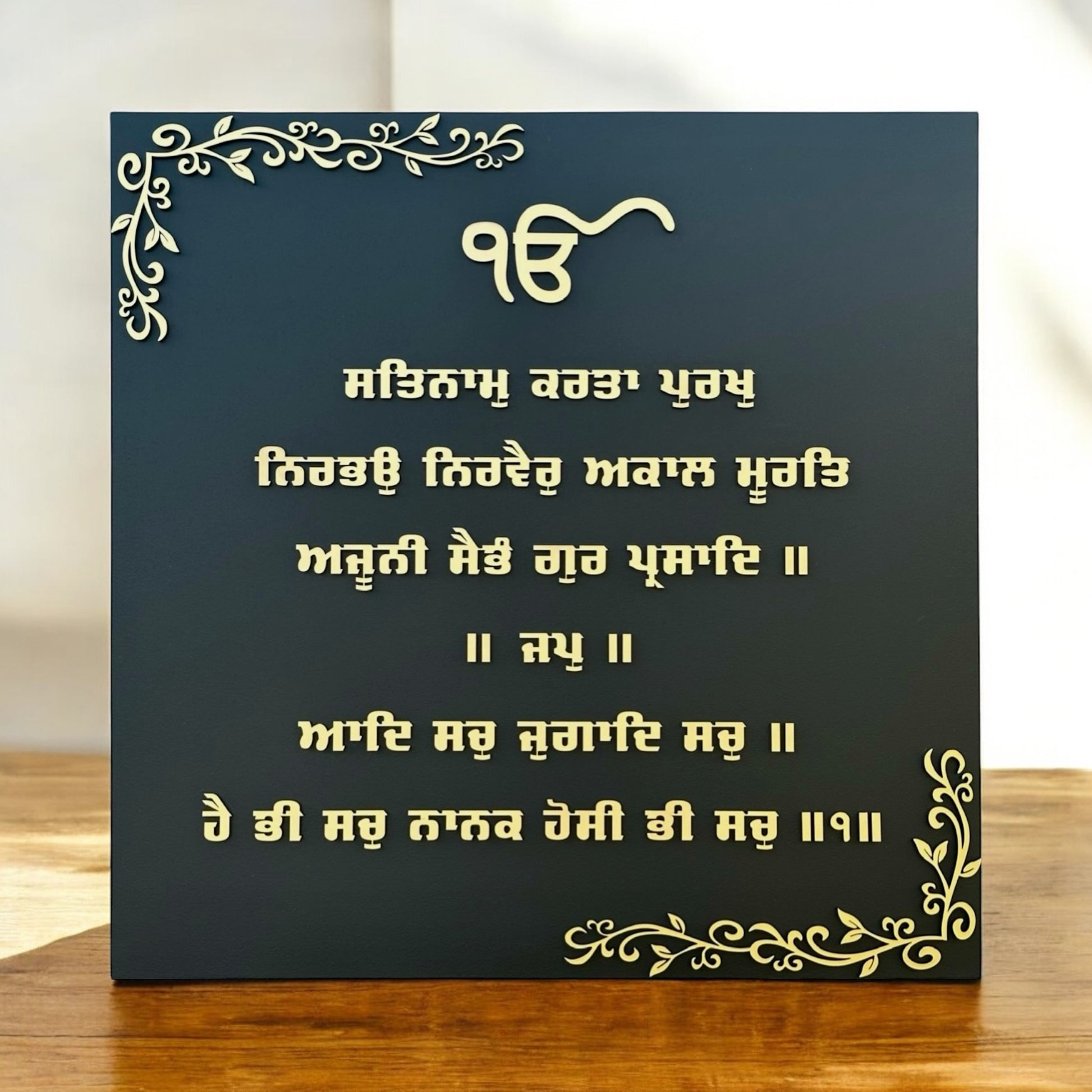 Elevate your living space with our stunning Black & Gold moolmantar Plaque. Meticulously crafted and laser cut, it showcases intricately designed embossed letters with beautiful corners Ideal for personal or gifting purposes, it adds a touch of elegance to any home decor.